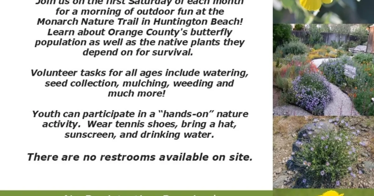 Join us on the first Saturday of each month for a morning of outdoor fun at the Monarch Nature Trail in Huntington Beach! Learn about Orange County's butterfly population as well as the native plants they depend on for survival.