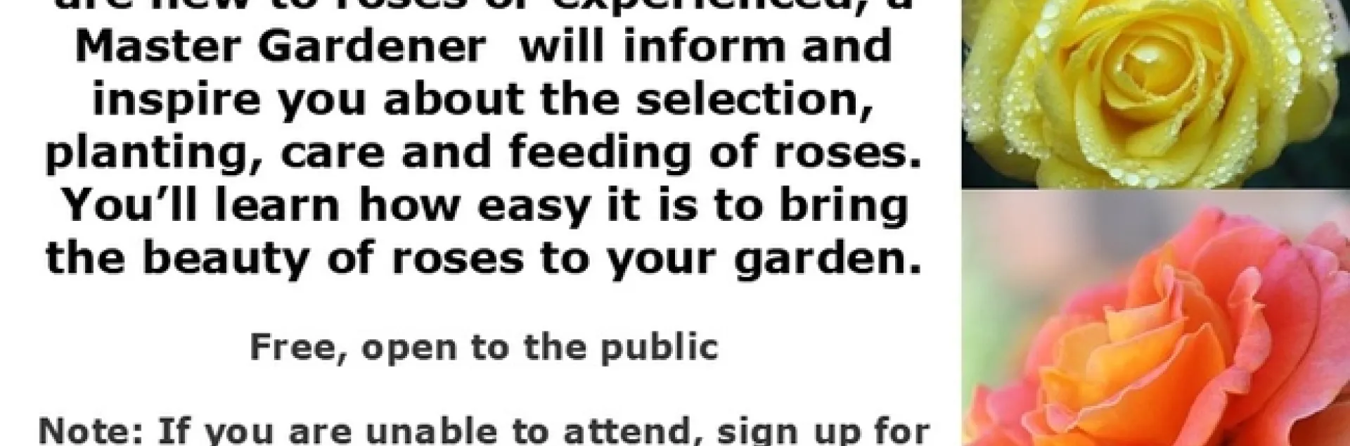 Roses bring beauty, fragrance, and romance into our lives. Whether you are new to roses or experienced, a Master Gardener will inform and inspire you about the selection, planting, care and feeding of roses.