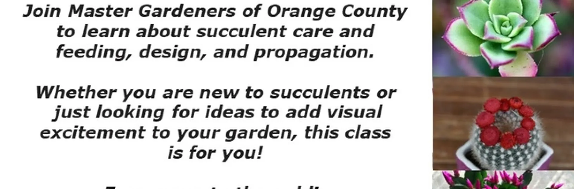 Succulents are beautiful and easy plants to grow, both in the garden and in containers. Whether you are new to succulents or just looking for ideas to add visual excitement to your garden, this class is for you!
