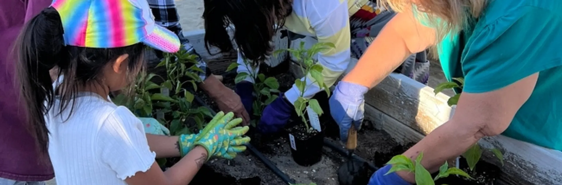 The CalFresh Healthy Living, UCCE Riverside (CFHL, UCCE) has been working with the Torres Martinez Desert Cahuilla Indian Tribe to advance policy systems and environmental change (PSE) and the health of the Torres Martinez Desert Cahuilla people since 2013. The spring planting in the A'Avutem (elders) garden in 2020 was very successful, however further activity in the garden was on hold due to the COVID-19 pandemic. The Tribe's Community Wellness Committee continues to meet virtually with the Cooperative Extension Advisor Emerita, Chutima Ganthavorn and the CFHL, UC staff, Andra Nicoli and the CFHL, UCCE Riverside team (Claudia Carlos, Jackie Barahona, Esmeralda Nunez) to implement PSE initiatives which are also the goals the ACORNS project (Advancing California Opportunities to Renew Native health Systems), funded by CDC through California Rural Indian Health Board (CRIHB). On March 22, 2022, Esmeralda and Jackie successfully organized another round of spring planting in the A'Avutem garden, with assistance from multiple partners including the Torres Martinez Natural Resources Department, UCCE Riverside County Master Gardener Program and Riverside San Bernardino County Indian Health (RSBCIHI). Eleven tribal members, including youth and seniors, gathered and planted chili peppers, bell peppers, onions, cherry tomatoes, tomatoes, squash, basil and chamomile. Our CFHL, UCCE Riverside team is thankful for the opportunity to be a partner with the Torres Martinez tribe in building health awareness, education and activities, and for organizing this garden event.