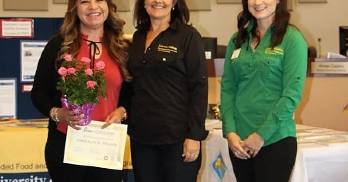 Two invaluable EFNEP contributors were honored at the UCCE San Bernardino Volunteer Appreciation Luncheon on Saturday February 9, 2019. The event was held at the Chino Basin Water Conservation District in Montclair. Alice Ruiz, a school nurse in the San Bernardino Unified School District, has worked closely with our youth educator Dalilia Lizarraga, to bring the program to Lincoln and Bradley Elementary schools over the last several years. The program has had a lasting impact on the 1st through 3rd graders reached. Each year they are excited to learn more about making healthy choices and Ms. Ruiz has played an integral role in this. Esmeralda McWilliams, also an honoree, is the community liaison for the Cajon High School Family Engagement Center in the San Bernardino Unified School District. Her close connection with parents from schools in the district, has helped the EFNEP program impact many families. She helped Clara Wilshire, EFNEP adult educator, overcome hurdles which led to a large group of 19 parents enrolled in EFNEP Eating Smart Being Active series. She also assisted in bringing in the UCCE Master Gardener program to teach parents how to grow their own herbs. Without dedicated volunteers, EFNEP program would not be as successful as it is today.