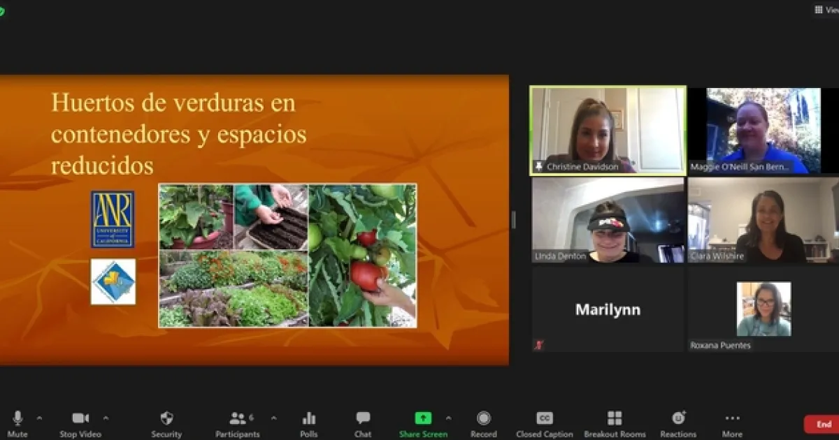 The first Master Gardener Zoom session, “Planting a Fall Garden”, focused on planting, growing and maintaining a garden in the fall season. The second session focused on composting and sustainable landscapes. By using food scraps, leaves and grass clippings, participants learned to create their own compost which in turn saves money and is better for the environment. Both sessions reinforced concepts learned in the EFNEP series including stretching the food dollar by growing your own food and using left over food or items in the home instead of buying at the store. The importance of eating a variety of fruits and vegetables was emphasized by sharing the variety of food you can grow in the fall. To help parents with picky eaters or those that avoid eating fruits and vegetables, the volunteer shared ways to involve children in planting, maintaining and harvesting. When children are involved in the process, they are more likely to eat or at least try something new. The Master Gardener volunteer was available to answer questions specific to participants. Each topic was presented in English and Spanish to reach the diverse residence of San Bernardino county.