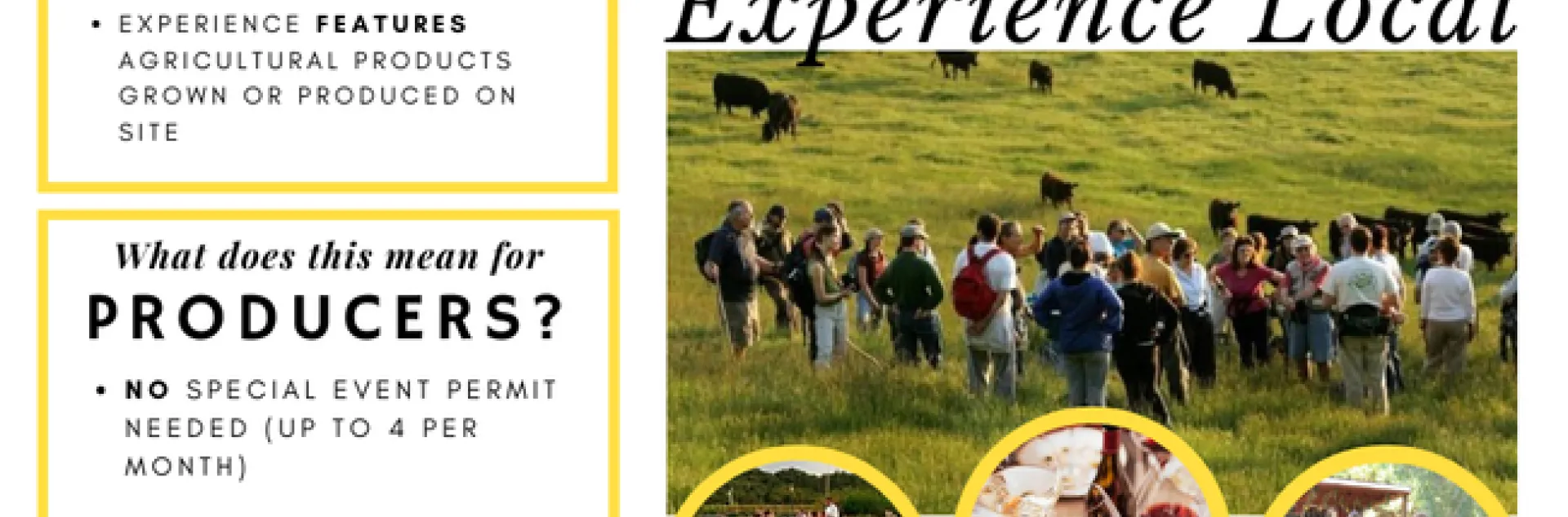 What are agricultural experiences? Could they include a tour with an outdoor activity – goat yoga perhaps? Or a farm to table meal? Educational day camp where participants make meals with farm produce? Picnic Day on the farm? Any of those and more are included.