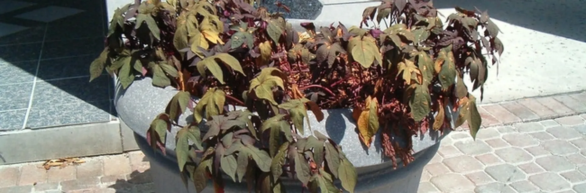 Plants will often have wilted, curling brown leaves as the heatwave drags on. Your urge may be to whack off the dead parts and give the plant a shot of fertilizer. Hold on! The dead part can protect the living part from further burning. Refrain from fertilizing until temperatures drop below 90 during the daytime. Fertilizer pushes the plant to grow, stressing the plant even more.