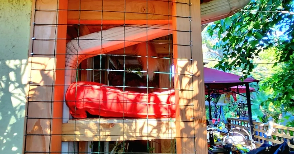 We were excited to see many differentcatio designsonline and viewed many videos by folks showing the construction of their own projects. My husband ended up building one that incorporated the features we liked from these videos. We chose a 10 x 2 feet area under the roof eaves just outside my office, so that our cats could use my window for passage into theircatio. He added an outside door for easy access to tend the area or retrieve a snoozing cat if needed. There is also removable fence panel for washing windows before it rains… it always rains when we wash the windows. All of the area is very secure.