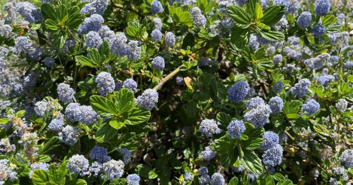 There are several species of Ceanothus, some are bushy and grow 1' – 2' high and 6' around. Others are bushier and can grow up to 4' high and 6' around. The 'Ray Hartman' species can be pruned to be a small tree. The flowers come in various colors from dark purple, to pale blue some even with pink flowers. Leaves, besides being dark green can also be pale green, or variegated. With the various colors available you can pick the plants that will bring that special color and texture to your yard.