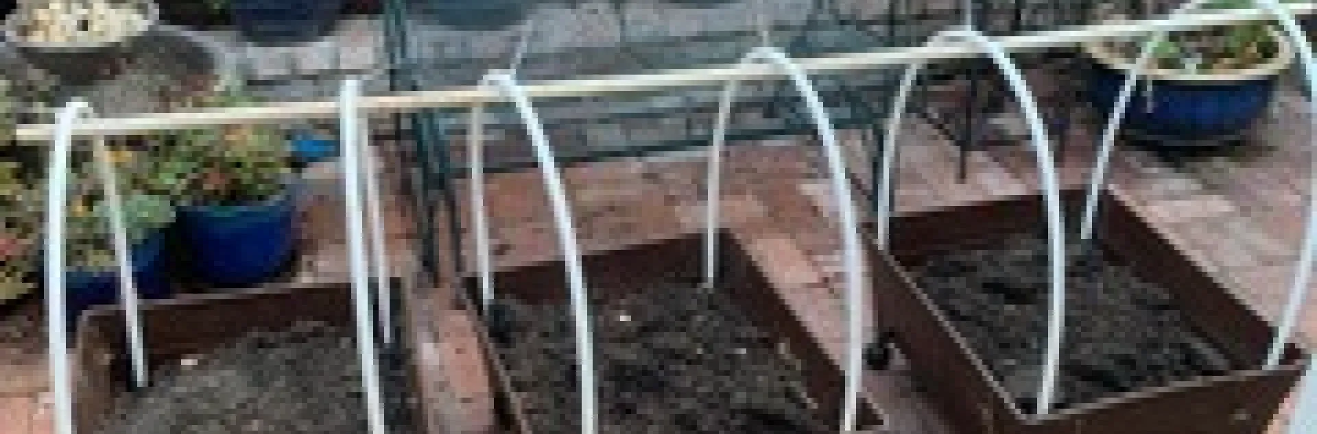 It's 90 degrees outside this weekend and I find myself inside an air-conditioned store browsing the cool weather crop selection. I want to get my seeds started now while the temperatures are still warm enough to promote germination efficiently. At home, I've already pulled out my winter containers and set them up on the patio right next to my kitchen door. A few years ago, I used the raised beds on the far corner of the house, but I noticed my leafy greens were bolting before I ever got to them. I decided that a more practical solution was to put containers within easy access to the kitchen so that they wouldn't be overlooked during the hectic meal preparation. I also have a hose spigot nearby, which is a key requirement for irrigation or convenient overhead watering via the hose. After I set up my four containers/pots I fill them all with a mixture of soil and coco coir. I like to amend the soil with coco coir as it retains water, is sustainably- sourced, and is fairly inexpensive. The last preparation for the containers is to push two lengths of PVC pipe into the corners so that they bend and form an arch at each corner. PVC pipe comes in all sorts of widths but I just use the ¼” size as it is flexible and still sturdy. Then I strap these together with a straight length of PVC to support the arcs. As I mentioned, these cross pieces stabilize the PVC arches so that they don't get knocked over by wind or rain. With the beds ready for planting I go see what seeds my local nursery has in stock. I know I would have a lot more options if I bought online but I'm not looking for anything exotic this year so I find what I need and head home.