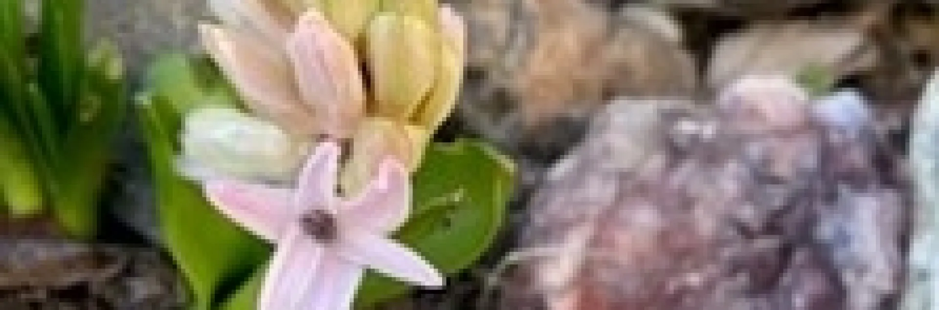 Common Hyacinth has many interesting characteristics beginning with its name. Hyacinth, in Greek mythology, was a man who was admired by both Apollo and Zephyr, but was killed in a jealous fight between the two Gods. From his blood emerged a flower that was named after him. Upon researching this plant, I discovered that it came in a myriad of colors from deep indigo, bright magenta, fuchsia, purple, white and light pink like the one in my garden pictured here that is just emerging.[2] (Note the rocks it is emerging from!) All the existing cultivars are derived from this species. This genus has three species of bulbous perennials that were found growing on rocky limestone slopes and cliffs 8,200ft up in Asia. They are cultivated for their loose to dense flowers. A standout characteristic of this beauty is its heady fragrance. This is why the plant is commonly grown for perfumes as well as its ornamental value due to the sheer beauty of the flowers they produce. When planted in full sun the plant reaches from 6” to 20” high and spreads from 2.5” to 4” wide. It produces fat spikes of bell-shaped flowers that grow from basil (at base) bundles of narrow bright green leaves. The semi-erect basal leaves are 6” to 14” long. They are strap-shaped, channeled, glossy, and dark green. They can be found growing in containers, beds, borders and in rock gardens as pictured in the two images above, showing the emerging flowers that grow as dense racemes.[3] The racemes[4] grow up to 8” long and are closely packed with tubular-bell-shaped single or double flowers, .75”-1.5” long. It is advised to plant the bulbs before the ground freezes. Plant in organically enriched, sandy well drained soil. For larger bulbs, plant 4”-5” apart and 5” deep. For smaller bulbs plant 3” deep, 4”-5” apart in the autumn. Be warned when handling, these bulbs have invisible barbs that can cause itching with some people, therefore it's always advisable to wash your hands before touching your face or eyes. If you plan to keep your bulbs in the ground fertilize as the blooms fade, removing the spent spikes and watering regularly until the foliage yellows. If you are planting in containers, use a porous mix of potting soil with the tip of the bulb near the surface. Cover this soil with a thick layer of mulch of sawdust, wood shavings or peat moss. This will help keep the bulbs cool, shaded, and moist until you start to see top growth. Once that happens remove the mulch and pace in full sun.[5]