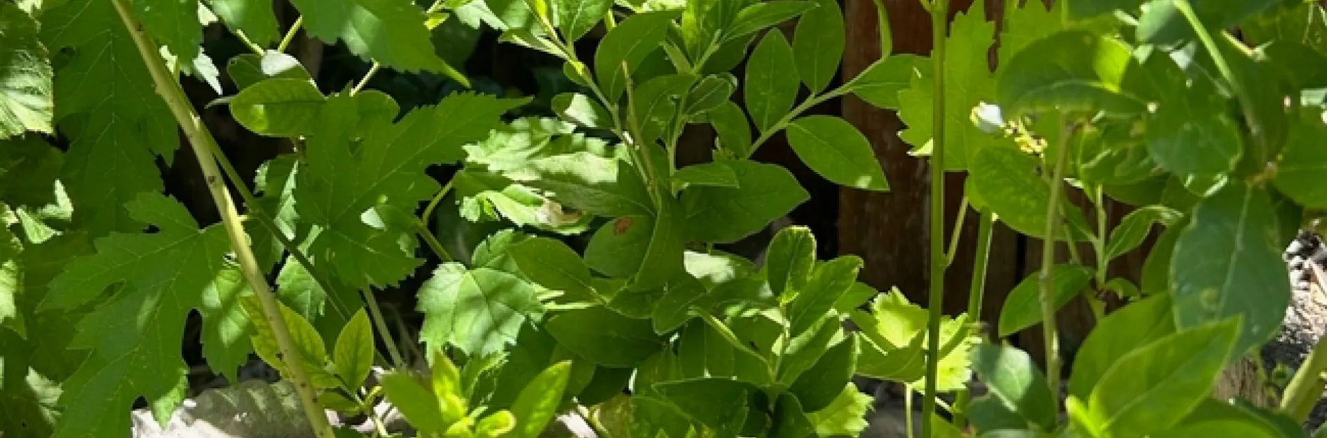 ‘Top Hat' seemed to like his new home and started to produce lovely berries that were larger than the other varieties I have grown. In June I noticed from a distance that the shrub looked much fuller than before. When I got closer, I saw there was a totally different plant growing behind the blueberry. It was very healthy and vigorous with beautiful leaves. I tried a plant ID app on my phone that told me it was a fig. But this plant's leaves were much thinner than a fig. So, I sent a picture to my UCCE Master Gardener Coordinator, Jennifer Baumbach. She suspected the plant was a type of Mulberry, possibly White Mulberry, Morus alba.