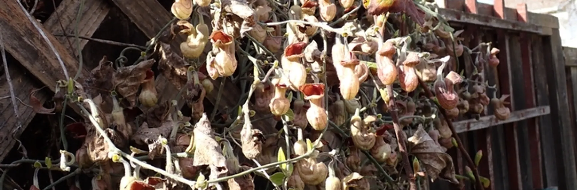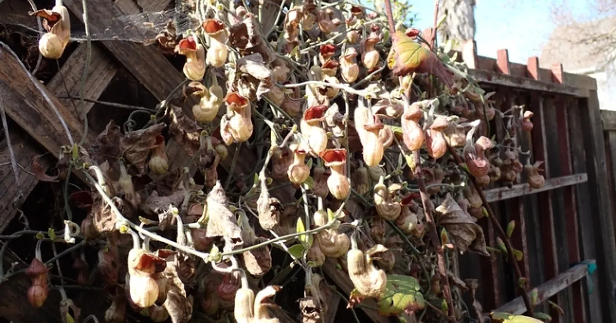 This blog post was born as, with growing astonishment, I reeled in yard after yard after yard of multiple runners of native California pipevine (Aristolochia californicaTorr.), hand over hand. If I hadn't, in short order a wholefenceline of desirable plants would have wound up smothered in its big, soft leaves. In January, I was thrilled to see the vine's trellis covered with little brown “pipes.” I allowed it free rein in a large neighboring bush, while clipping errant tendrils I noticed heading in other directions. Only when I happened to lift some of the thick mulch along thefenceline did the scope ofpipevine'sinvasiveness hit home! Moreover, thepipevine went to seed this fall, which will make things worse. I've got a resident monster that will require perpetual monitoring and pruning of runners and seedpods.