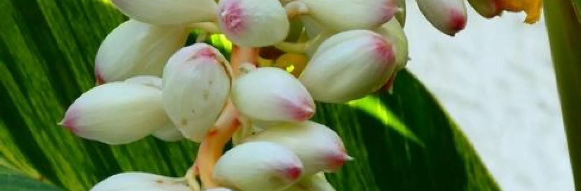 Alpinia zerumbet ‘Variegata' is the name of the intriguing ginger thriving to this day in my backyard. Some call this variety “shell ginger” for its strands of flowers that look like tiny seashells strung together. Each year when the weather warms, I stand in awe at the gorgeous fragrant display. Also labeled a “variegated ginger,” its leaves live up to that moniker, each leaf unique with an unpredictable pattern from stripes to splotches of green, white and yellow. The leaves alone are an attractive addition, especially to a fall or winter garden. Although the stalks can be susceptible to a frost or freeze, don't despair and toss out the “died back” clump. By spring you'll notice new shoots popping up once again. For me, it's all part of the intrigue.