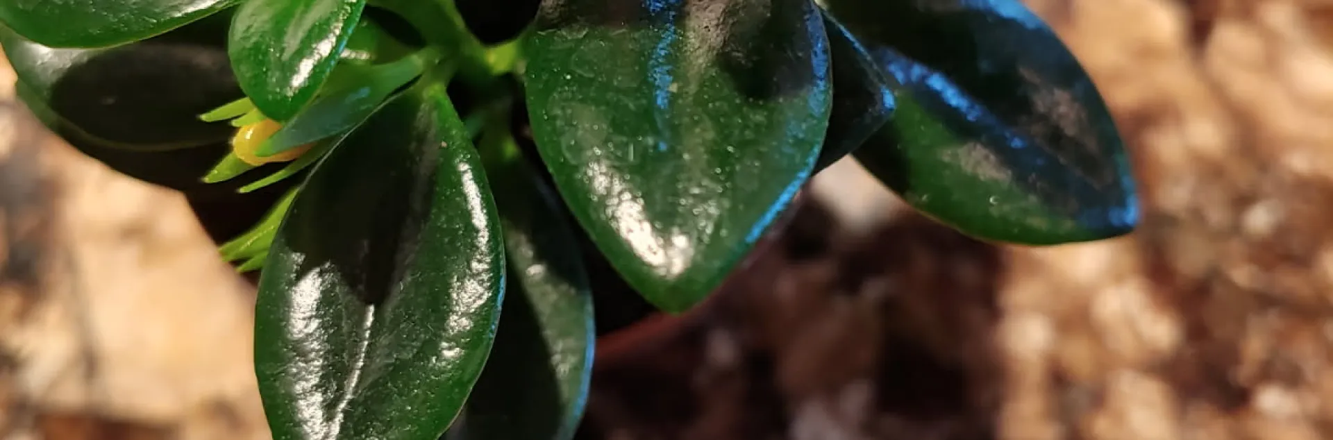 and well-draining. Water well when dry and certainly mist occasionally in our dry climate. Since it naturally grows attached to a larger shrub or tree, it prefers brighter, dappled sun only, not direct. I will keep this tender Nematanthus in the house for winter and then move it under a shade tree for summer.