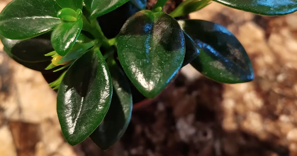 The goldfish plant, Nematanthus gregarious, is native to Brazil. It is epiphytic, which means it grows attached to other plants, like a tree. Because of the way it grows, it does best here as a hanging plant. Soil requirements are light, porous,