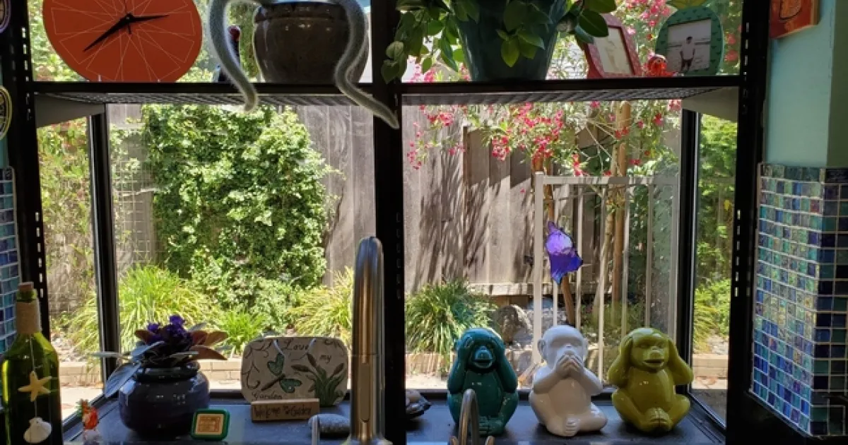 Since the warmer weather is here, I've noticed the top shelf of my garden window was too high to the glass up top and the Mona Lisa started to get a sunburn.  So today I lowered the shelf, fertilized well, and then placed in back next to my Tail of the Monkey plant that was starting to bend as it grew on the lower shelf.  My African Violet, Tail of the Monkey, and Mona Lisa Lipstick give me such joy every morning while making coffee.  They are there to remind me of the wonders of nature and how much I must be grateful for.  Today what I'm MOST grateful for is that my family survived the COVID virus including my 82-year-old Mom.  After several months of worry, I will fly out of the 16th to Chicago to see her and my 2 brothers to celebrate and finally reunite. I did warn them to get ready for the biggest love fest of their lives! ha!