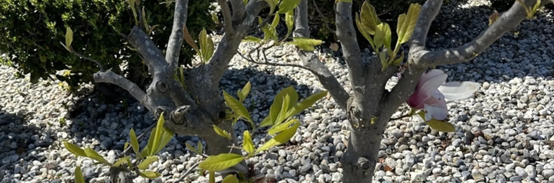 When pruning deciduous magnolias, many gardening experts say “don't do it” unless preventative maintenance is required. Magnolias don't require regular pruning. But sometimes there is a good reason to prune – the health of the tree, safety, to prevent a limb growing into a wrong location (like a pathway), to remove crowded or weak branches, etc. A common mistake, however, is planting a tree or shrub in the wrong location. If a plant has to be pruned continuously or heavily to fit its location, then it is likely the wrong plant for that spot. (I'll admit that I'm guilty of this error, including with my own compact deciduous magnolia, but perhaps that's a blog for another day.) These six magnolias must be pruned regularly to fit their landscape situation.