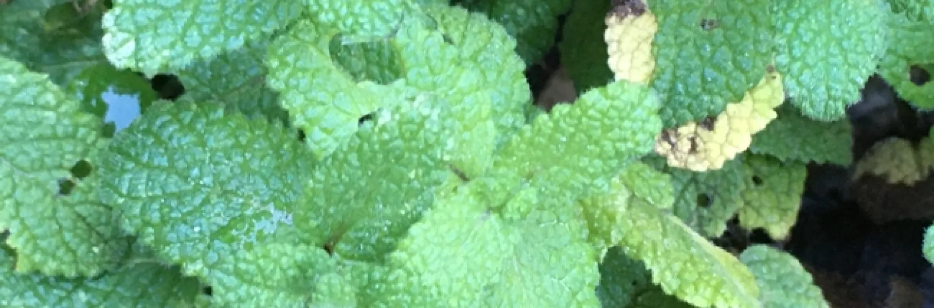 Mint can be plagued by aphids, cutworms, rust, spider mites, loopers, thrips, verticillium wilt, mint anthracnose, mint flea beetles, mint root borers, and grasshoppers. I suspect that the one mint that I have not cut back (and that I used for the picture for this blog) has a looper problem. It will be taken care of when I get a chance in the next week to cut this last mint down to the ground and deposit the cuttings in the gray can.