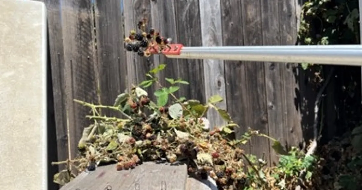 The summer fruit harvesting continues. We've had some hot days. I'm still waiting for the passion fruit to ripen. The grapes in the side yard are starting to ripen. But not quite as sweet as they could be. I know, because I've been eating them off the vine. The blackberries are ripening also. I would like to think I got smarter in recent years with harvesting the blackberries. I use my long-handled rosepruner to cut a long branch and carry it, ripe and unripe fruit, onto a surface, like a table. This way I can pick-off the ripe berries without scratching myself too much on the thorns.