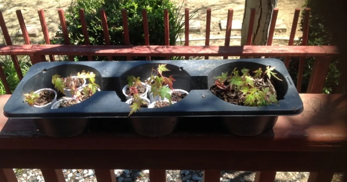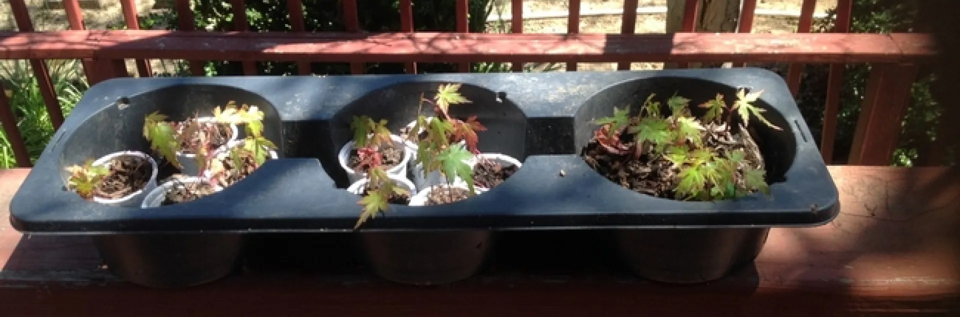 Whenever I get a call from my mom that starts with "Jennifer, I need for you to come over and do" whatever is on her mind in her yard at that moment, I get a little worried. This time, she wanted me to come over to "take care of the little Japanese maple sprouts." I calmly informed her that I have been known to be the killer of Japanese maples in the past. She didn't care. So, over I went and checked out the little sprouts. There were all kinds of little seedlings all around the area where she planted her maples that had been in pots in the back yard for YEARS! A couple of neighbors had already plucked up many of them. I dug up the ones that are pictured below and took them home in a plastic bag. Not really knowing what was the best way to proceed, I took little bits of the soil around the roots, so as not to shock the little trees. Once at home, and still not knowing the best way to proceed, I went to the laptop and started searching for info about what to do next.