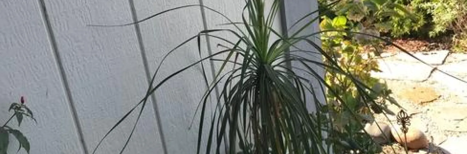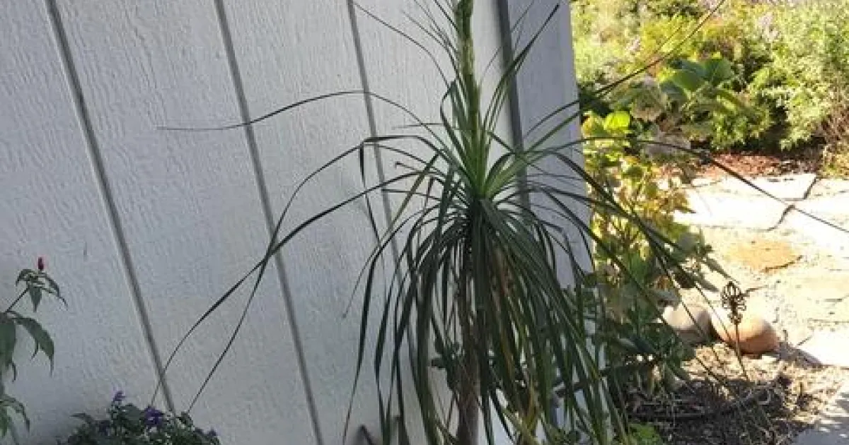 It's actually not a true palm. Some other common names are Bottle Palm and Elephant's Foot Palm. The Pony Tail name is because the long, narrow leaves cascade down from the center top of the trunk. The Elephant Foot name refers to the swelling at the base of the trunk; this area can store water allowing the plant to be drought tolerant.