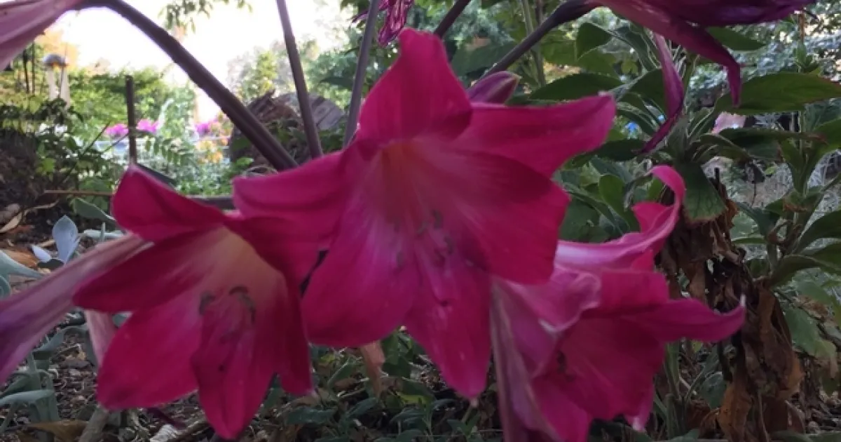 Right now, I have approximately 125 Naked Ladies (Amaryllis belladonna) which I had potted up for various plant exchanges which didn't happen this past year and with the soil softened up by the rain, I'll be planting them along the fence line just to have some color along the back and side fences. There they can sit and grow and multiply until a later date. Hope to see you soon!