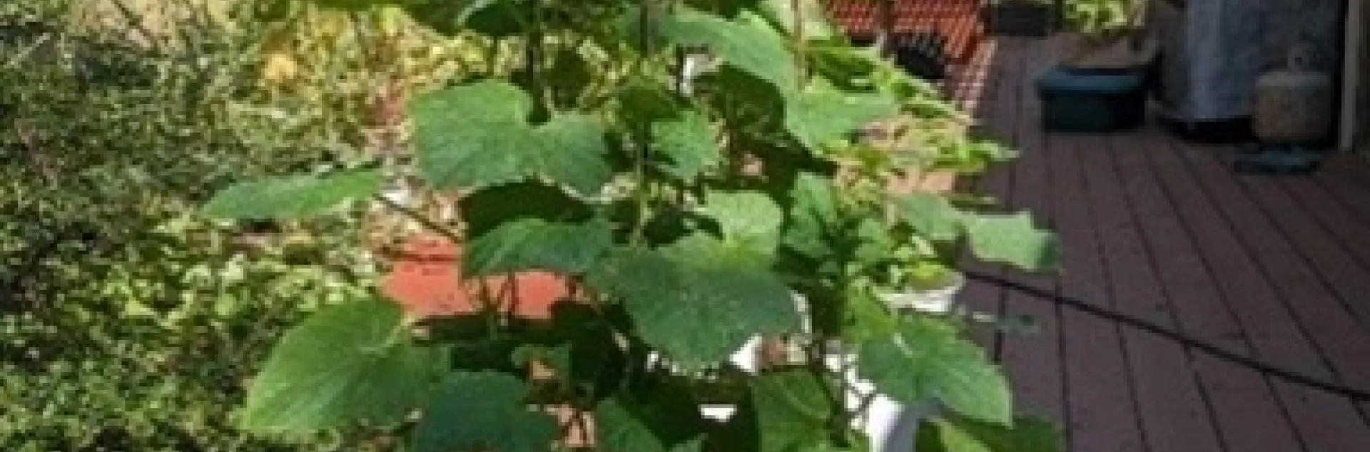 Here's a riddle; How do you grow a four-foot plant in an eighteen inch spot? Give up? Grow vertically!  This heirloom ‘lemon cucumber', (Cucumis sativus 'Lemon'), needs plenty of room; at least 4 feet with its vines of up to eight feet long! Trained on this trellis, its footprint is only 12×12 inches.
