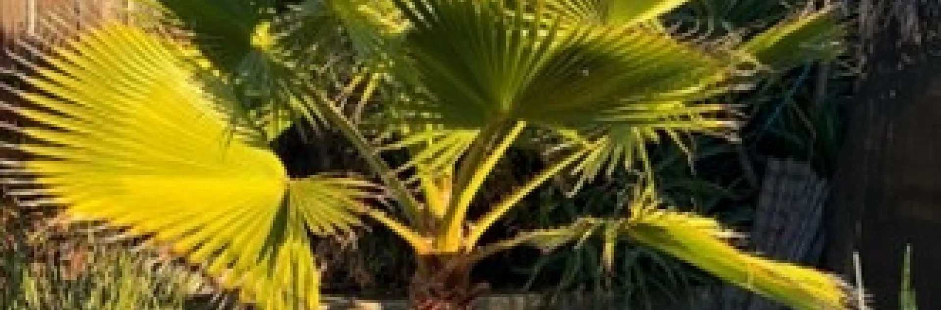 (Washingtonia robusta) Mexican fan palm is native to semi-arid landscapes ofNorthwestern Mexico, includingBaja California. It has become an invasive landscape plant. The dead fronds can create a fire hazard, so I keep up with pruning them out as soon as the leaves start turning brown. It also helps to maintain its attractive look.