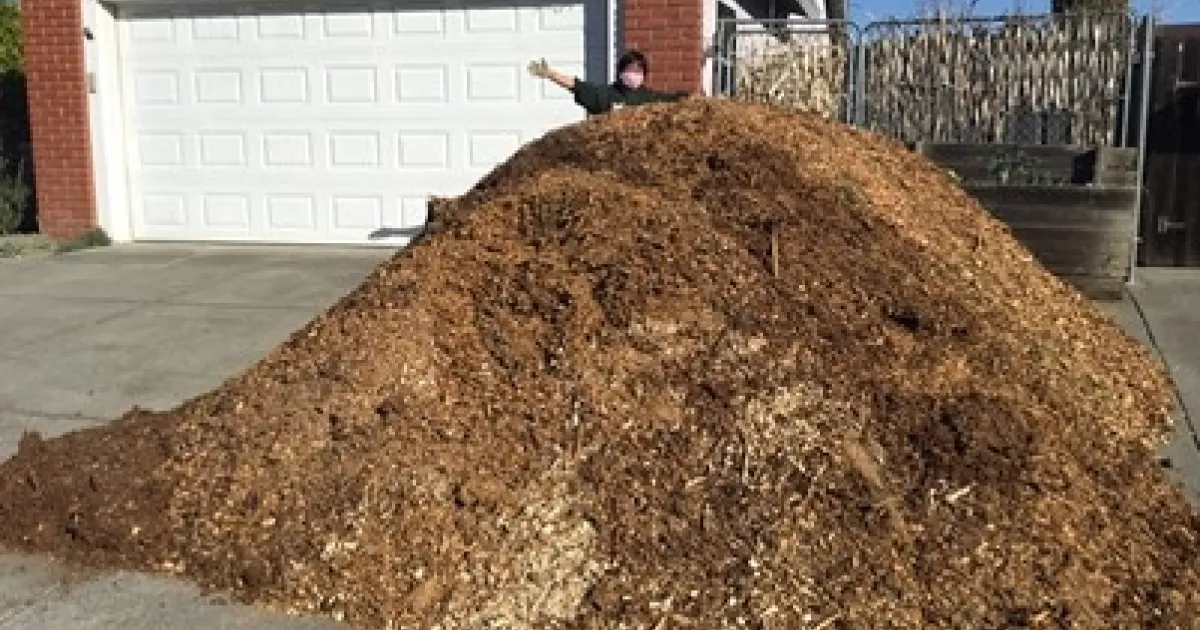 Earlier this month, we received a gigantic mound of wood chips, bigger than we've ever received in the past. This mound (or hill) covered our entire extra driveway and part of the garage, so it blocks my husband's car.