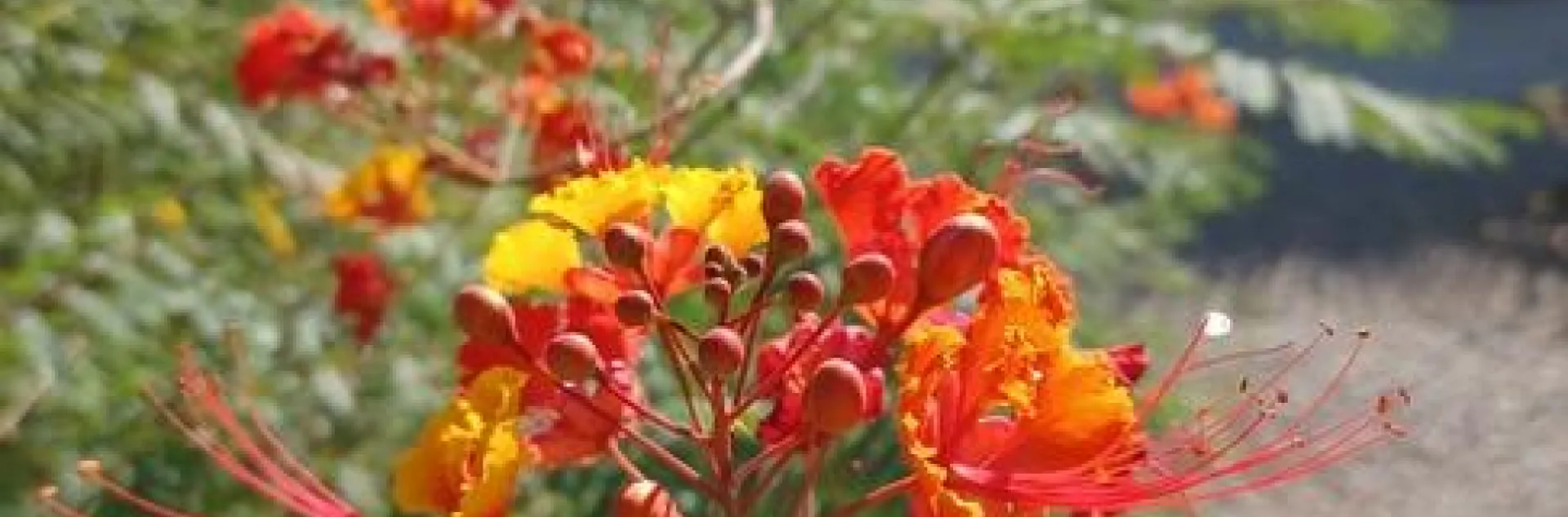 Finally, I found something resembling the site I first found dealing with Borrego Springs. The one pictured is the Dwarf Peacock Poinciana tree, Caesalpinia pulcherrima. The DesertSun.com site is really wonderful in describing the plants in the area. This plant is native to Barbados and is its national flower. It can grow 15 to 20 feet in height, but in frost-prone climates, it stays smaller and can be pruned to make a nice hedge. That being said, it tolerates pruning very well. It needs well-drained soil and full sunlight. The seed pods can be quite messy when they fall to the ground. They are drought and salt-tolerant plants.