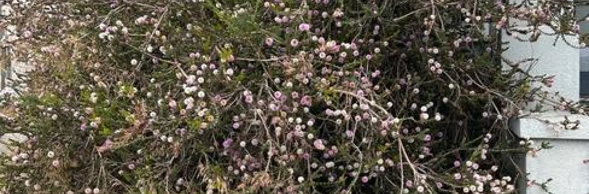 I had to check it out and take some pictures. The flowers were even more striking close up. When I got home, I put the pictures into several plant ID and search apps. I think the plant is Melaleuca nesophila in the Myrtaceae family. Common names include Pink Melaleuca and Showy Honey-Myrtle.