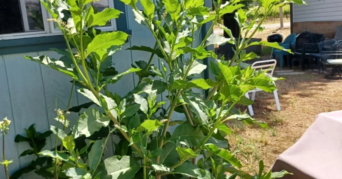 My daughter called me and asked me to come over to her house and check out this plant that had seemed to grow huge overnight. My mind immediately went to the plant from "The Little Shop of Horrors" because my daughter has a flair for the dramatic, but over I went, armed with my phone to ID this plant that she said was taking over the place.