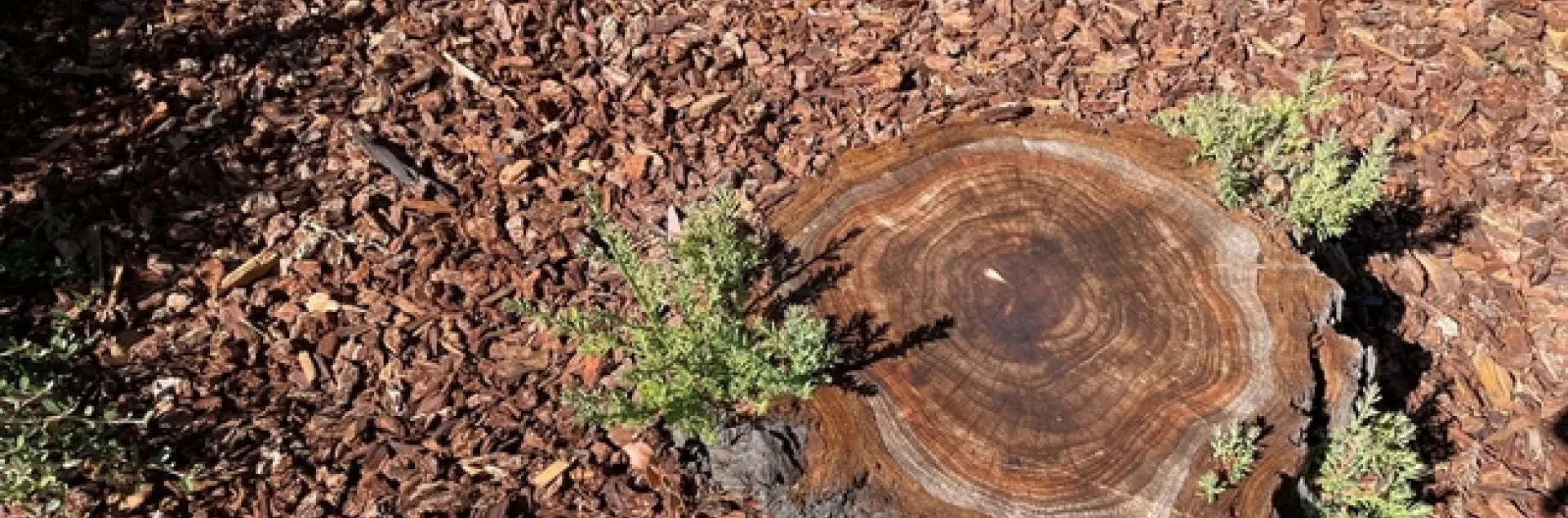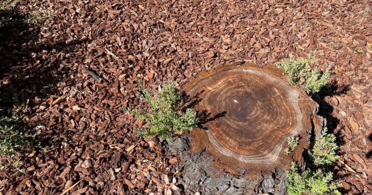 While walking along a local neighborhood landscaped area, I caught a glimpse of an interesting tree regrowth phenomenon. A tree had been recently cut and new trees were regrowing around and in the stump. There were two new growths growing directly on the stump. If you look closely, they were growing on the outer portion of the stump. They were growing straight out vascular rings of the living tree. The new tree was utilizing the roots system of the old tree for its water and minerals. The other trees growing near the old tree stump were growing directly from the roots. The tree “senses” a loss of photosynthetic material (leaves or needles) and tries to make up for that loss by putting energy into creating new growth. You can observe this sudden growth when a tree is overly pruned, new shoots of green suddenly sprout everywhere.
