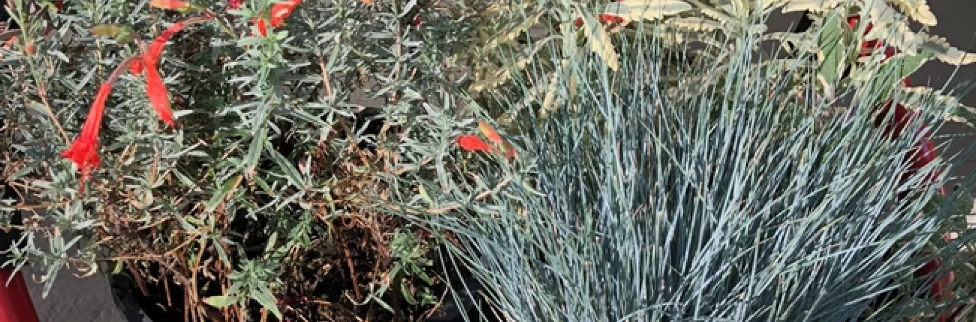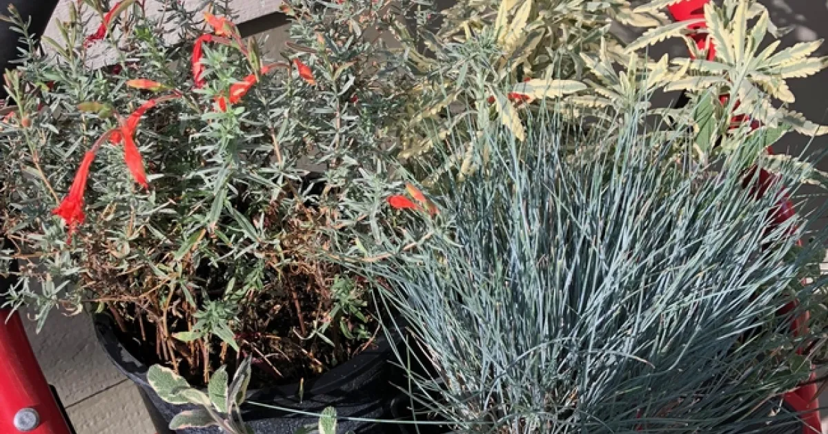 Also chosen were a couple of variegated sage, an ornamental grass, Festuca idahoeensis ‘Clearwater Blue', and a California fuchsia, Epilobium canum ‘Bowman's #1'. All drought-tolerant with complimentary coloring.