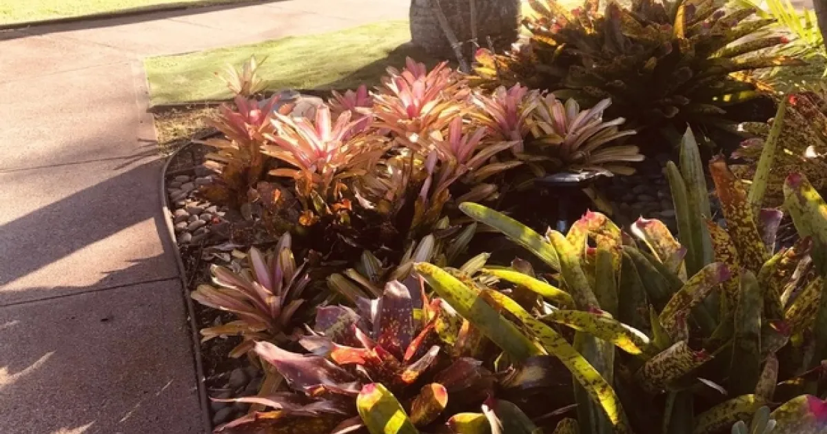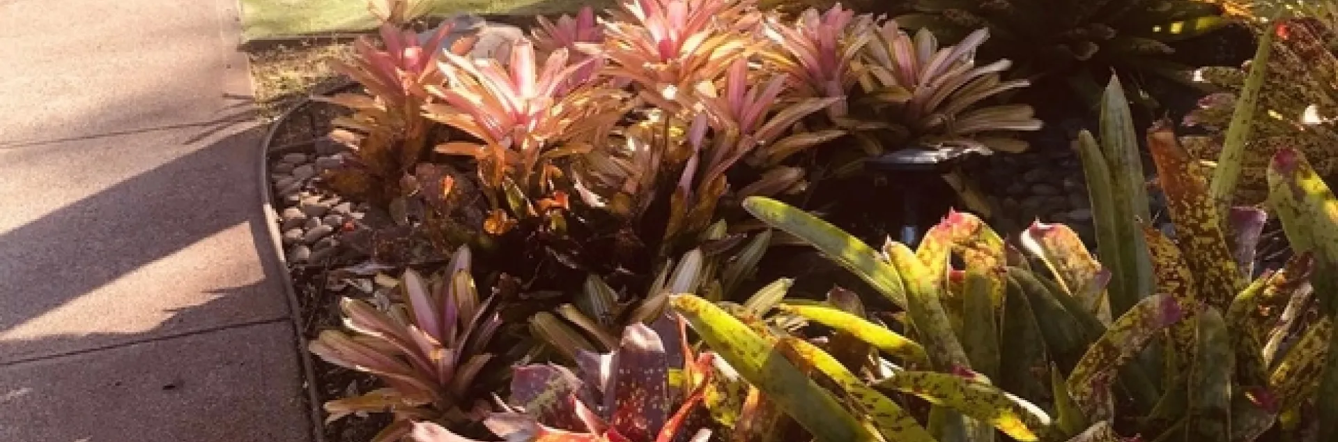 My husband and I just returned from celebrating our 25th anniversary in Maui. We had honeymooned there and celebrated my parents' 50th anniversary there, so Maui has always been special to us. In addition to the whale, sea turtle and surfer watching, and snorkeling I have always loved spending time with the tropical plants here. The grounds of the resort/condo complex we stayed at were just lovely. I was impressed with the combination of plants and bromeliads. The burgundy and green color combination was striking without a single flower in sight.