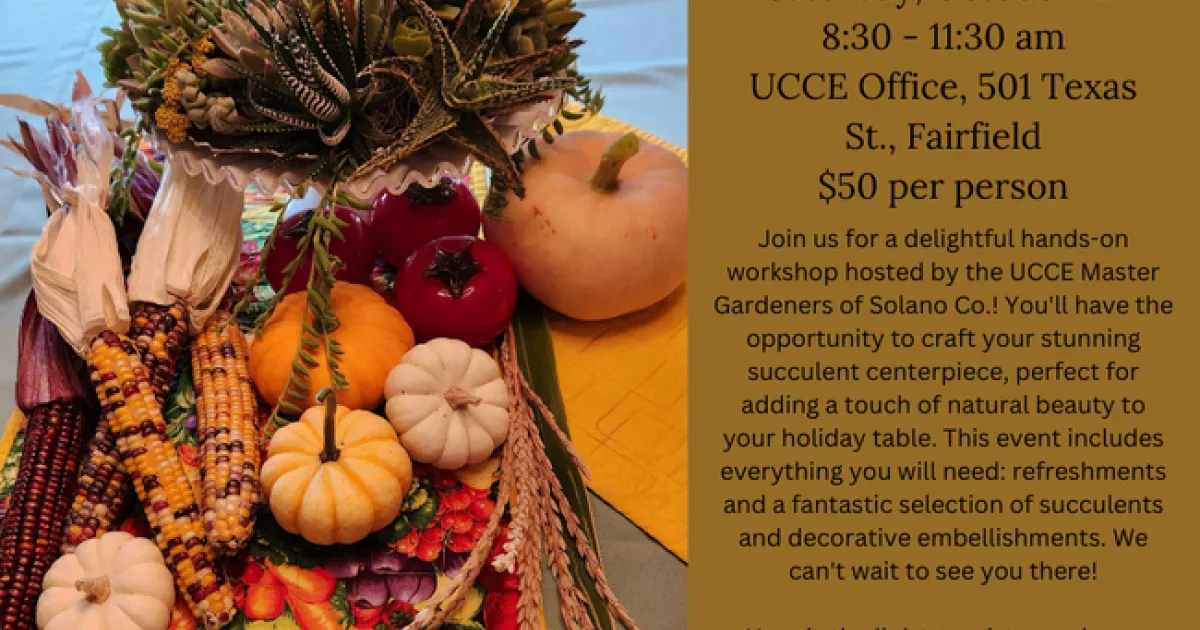 Join us for a hands-on, creative adventure where you'll design a one-of-a-kind succulent centerpiece to bring your holiday table to life. Using beautifully vibrant, locally grown Master Gardener succulents paired with natural embellishments, you'll unleash your creativity and leave with a stunning masterpiece! Plus, enjoy light refreshments as you mingle with fellow plant lovers in a relaxed, festive atmosphere. Don't miss this chance to make something truly special while having a blast—reserve your spot now!