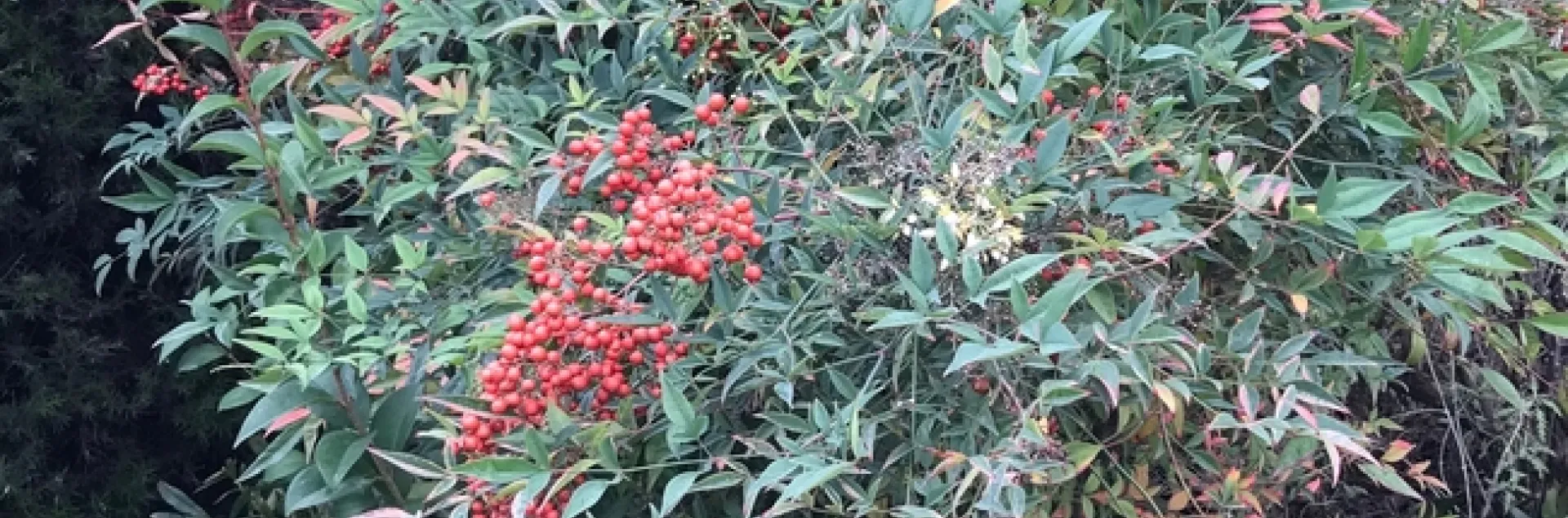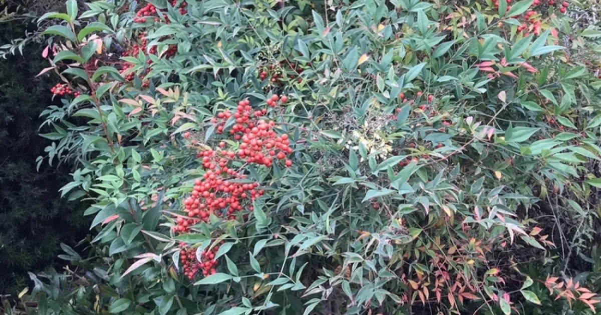 Others, though, continue to be lovely as they age and get larger. Heavenly bamboo, Nandina domestica, is an example of this. It is not a bamboo, but a flowering shrub native to East Asia. I have the Gulfstream variety that has finally grown into its full-grown, three and a half feet tall by three feet wide, state. It just took twenty years to do it. Aaah, that's what it needed, a tincture of time.