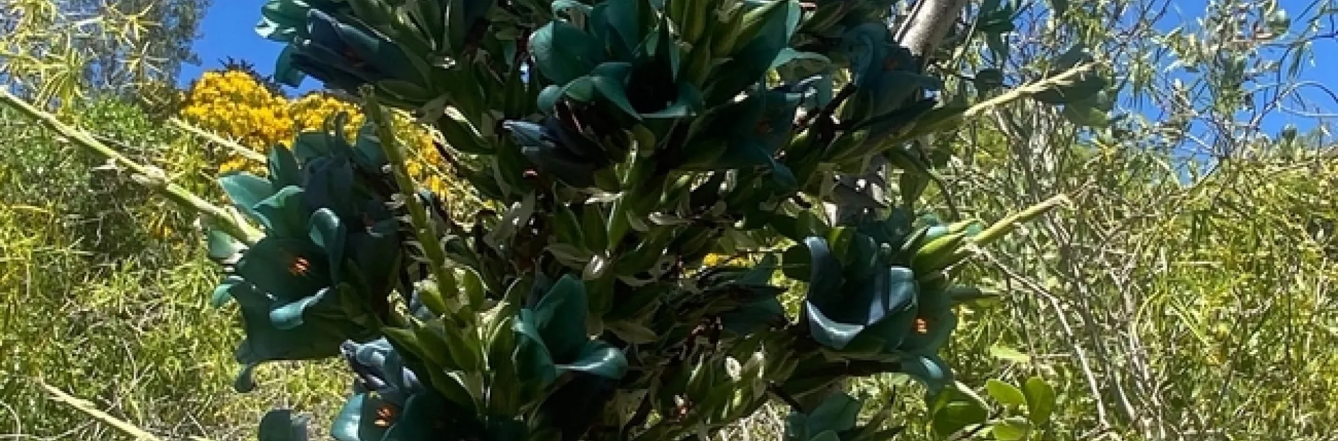 The posted attraction the day we visited was the Puya alpestris which were in bloom. Puyas are a terrestrial bromeliad, most native to South America. The variety that was the most amazing was the sub-species Zoleri with its oh-so-unusual teal blue color. Though very drought tolerant and low maintenance, the foliage is very vicious with sharp spined edges. If you are thinking of adding one of these great pollinator plants, you will need lots of space as they can reach 10 ft. across and 4-6 ft. tall.
