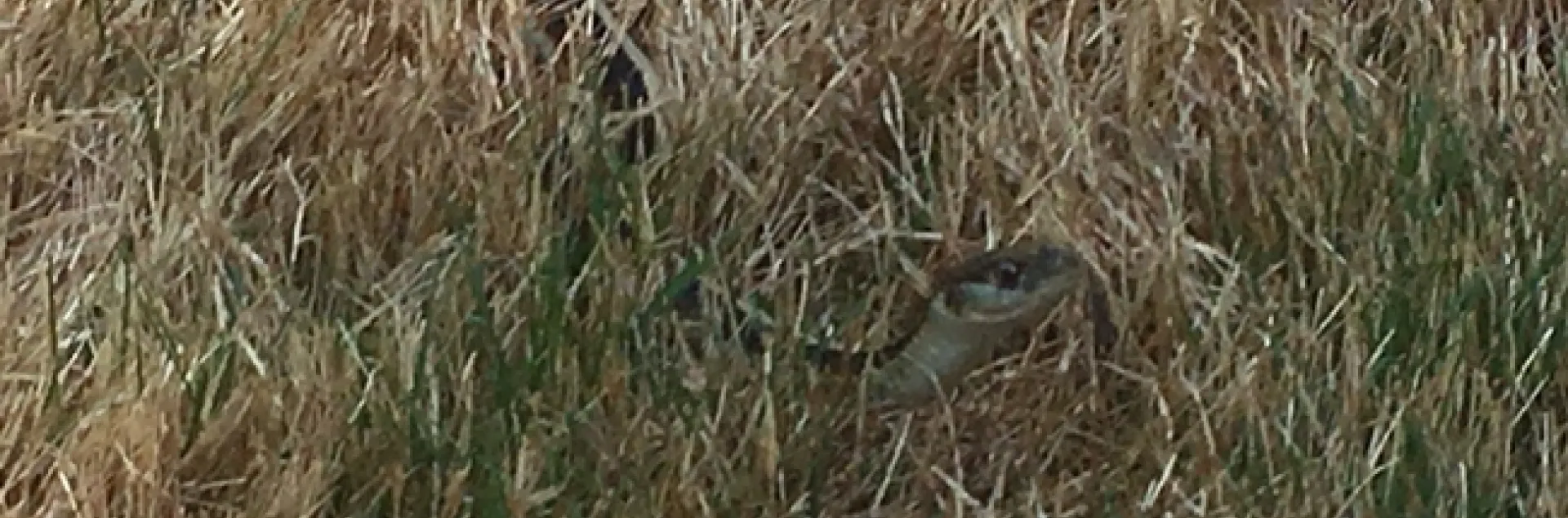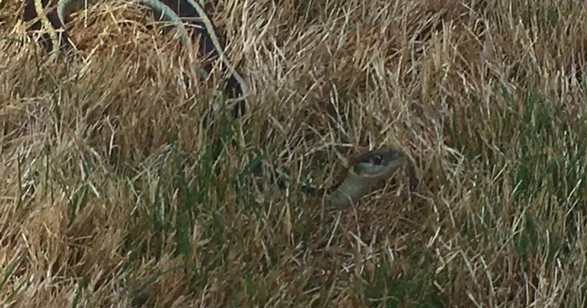 We had a surprise visitor in the middle of the day a couple of weeks ago. Stretched out across our tiny patch of grass in our backyard was a large snake. He or she had yellow stripes running the length of both sides of the dark brown body, round pupils and no rattles. Whew! Not a rattlesnake. I did some quick research on California Herps website and found that our visitor was likely a striped racer.