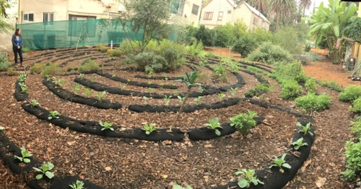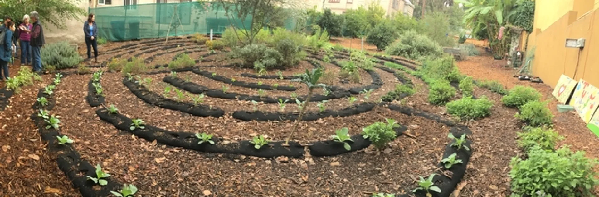 This small urban farm in downtown Los Angeles is part of the Episcopal Diocese Seeds of Hope program. It includes a living labyrinth for reflection, as well as flowers, fruit trees, herbs and vegetables for distribution in the community.