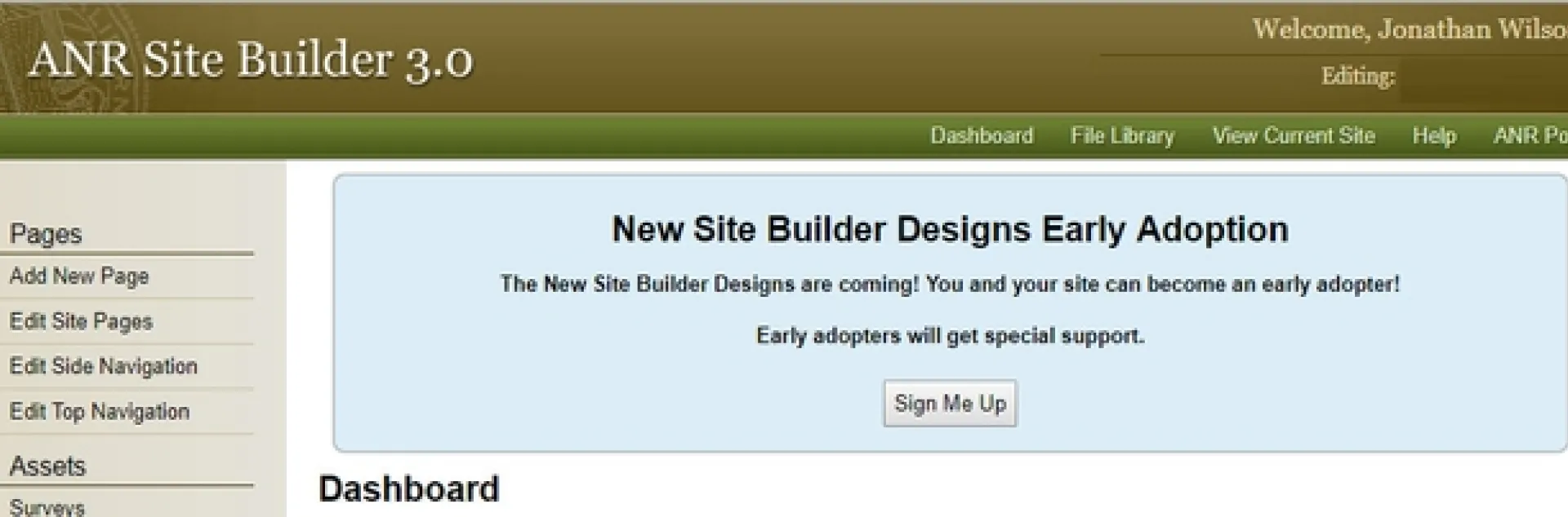 - Click 'Sign Me Up' under the message about 'New Site Builder Designs Early Adoption'