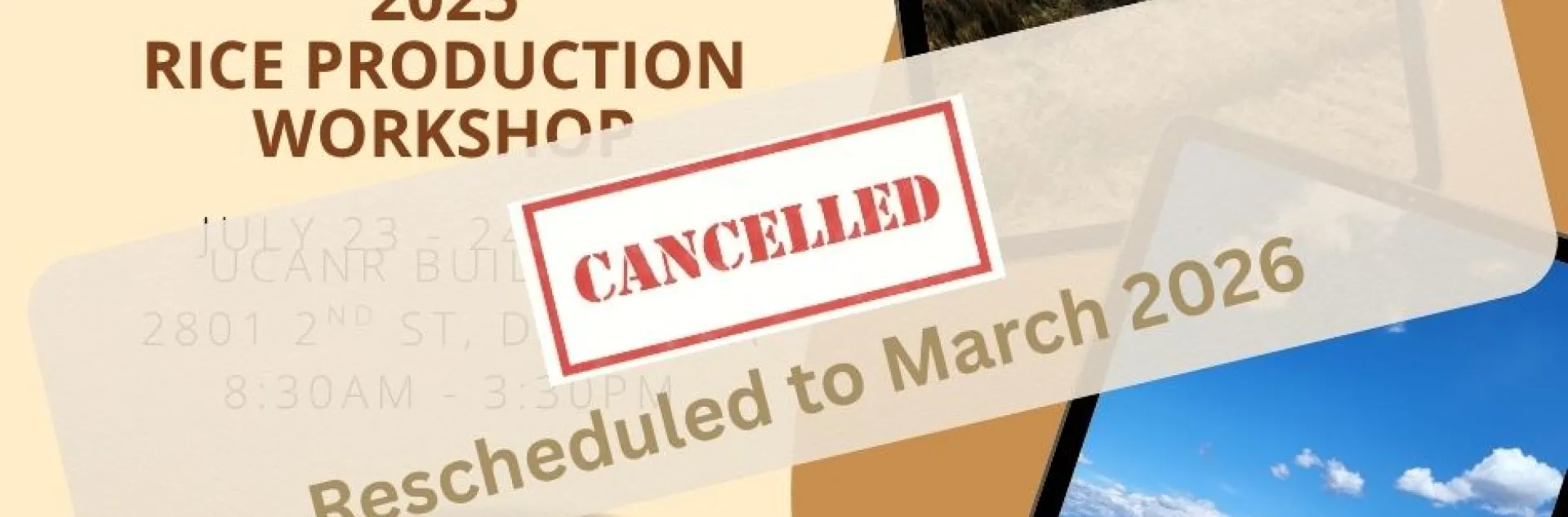 The 2025 Rice Production Workshop originally scheduled for July 23, 2025, has been CANCELLED and rescheduled to March 2026.
