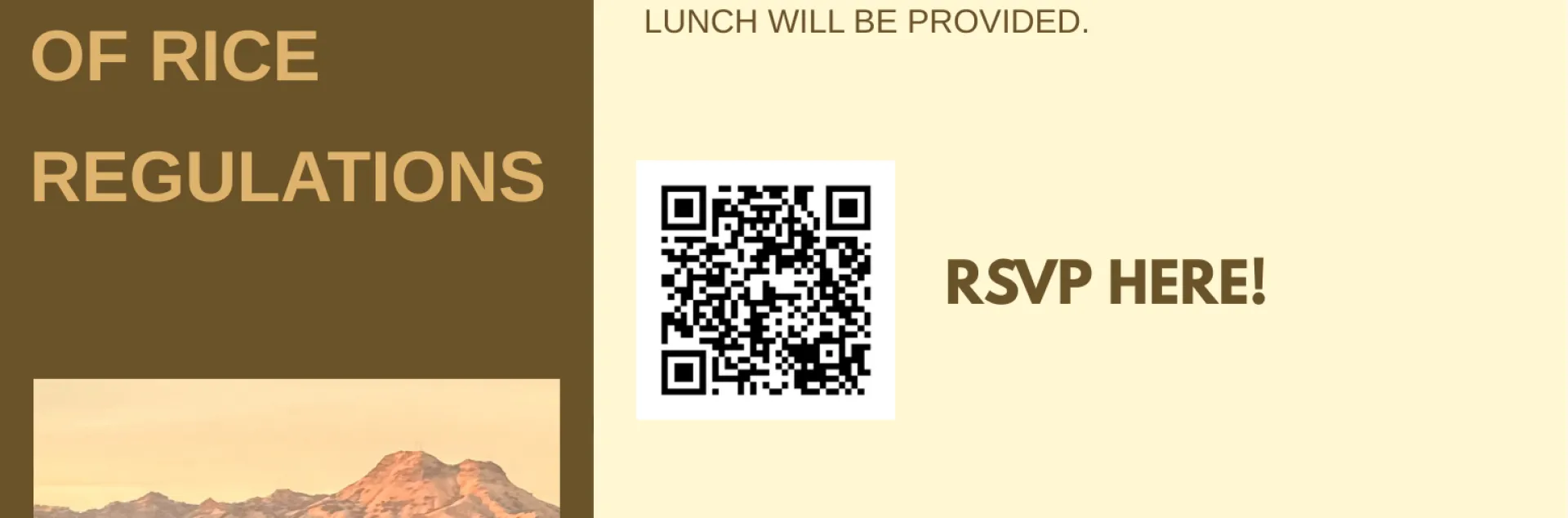 Join UC Cooperative Extension for an informal grower discussion to assess the economic impact of rice-specific regulations. This is an opportunity to share your experience, help inform policy support, and connect with other growers and partners.