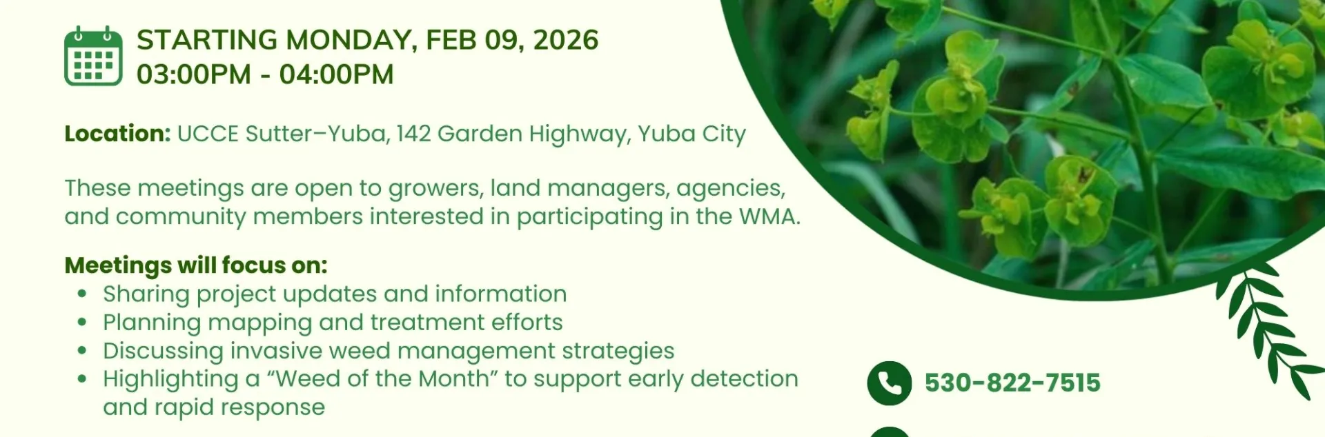 Join us for the Weed Management Area (WMA) Project monthly meetings, held on the second Monday of each month. These meetings are open to growers, land managers, agency partners, and community members interested in participating in the WMA.