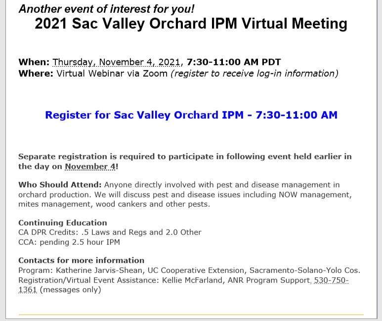 2021 Sac Valley Orchard IPM Virtual Meeting - Thursday, November 4