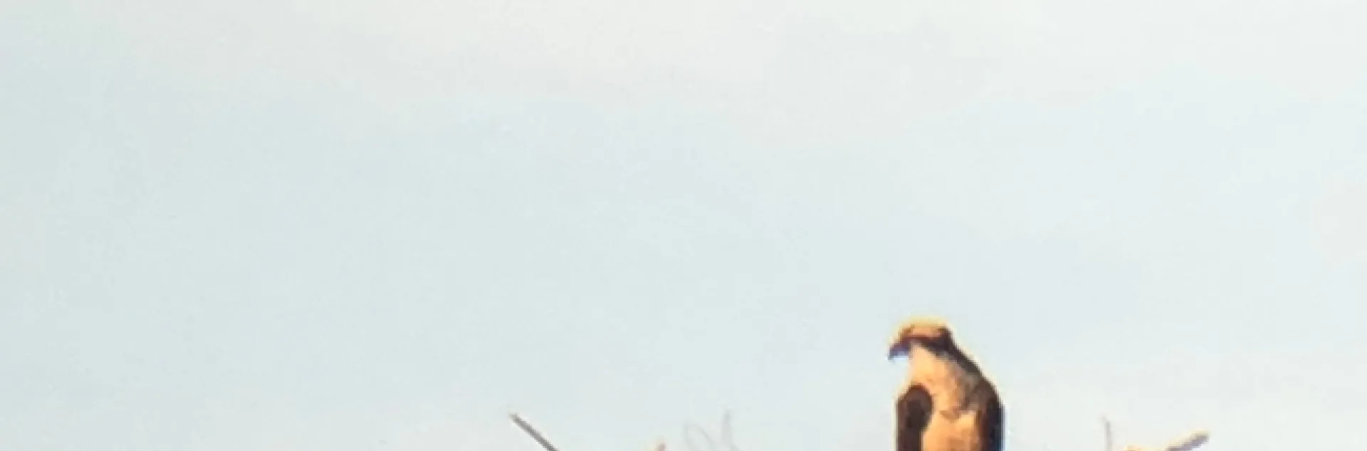 During this nest-building period, male ospreys will fly high and then dive repeatedly in vicinity of nest sit with nesting material clasped in their talons. When feeding ospreys will also orient the fish they catch headfirst to ease wind resistance.