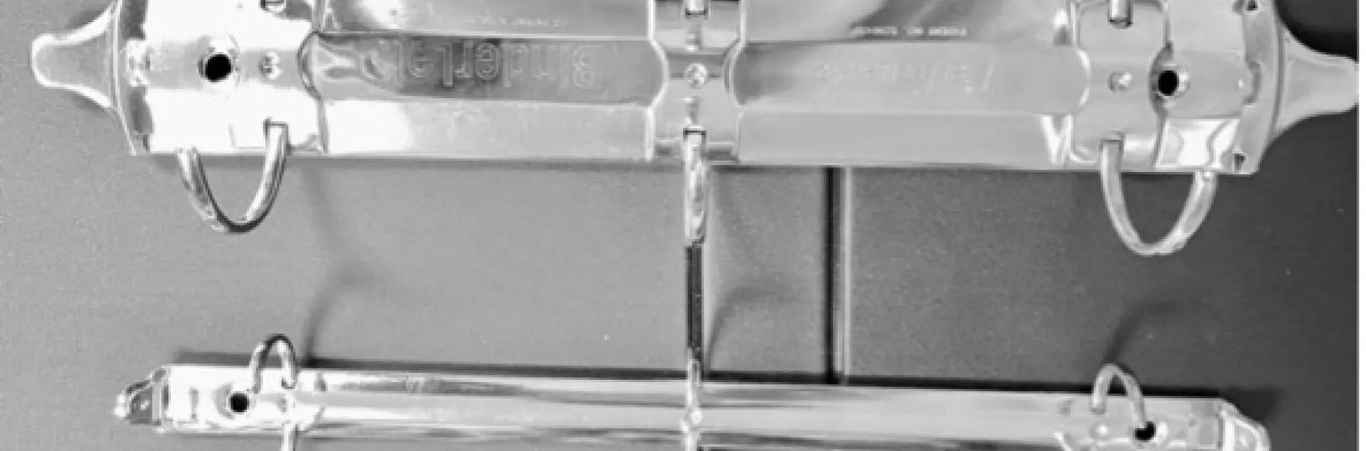 Now I have parts of binders all over the place. Which municipal collection bin to use? Idea: I will look at the tops of the cans to find the instructions. Vinyl covers black bin. Cardboard innards: brown or blue bin. Metal rings: blue bin. But gee whiz, those metal rings are in good shape, and they come in different sizes.