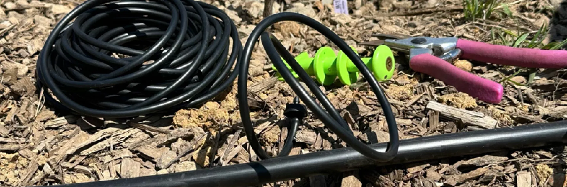 With the right supplies, many common irrigation problems can be easily fixed. An emergency drip repair kit should include spare flow emitters of different sizes, connectors (both straight and elbow), line plugs, end caps, and tubing. It’s also handy to have a tool for cutting tubing, a punch to make holes in 1/2” line, and metal staples for securing the lines. The same supplies are useful when drip lines need to be added for new plants.