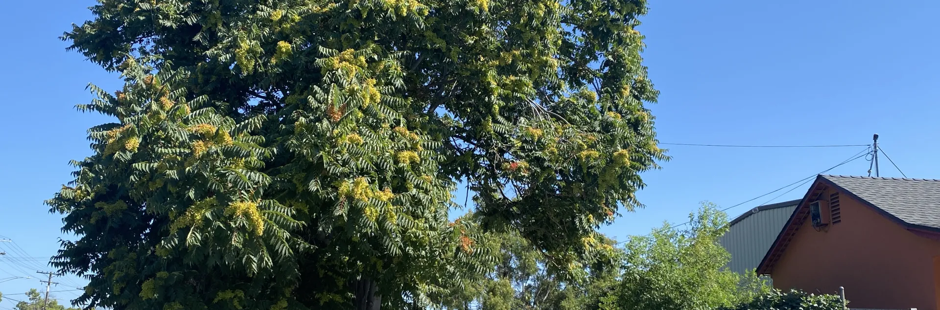 Do not plant tree-of-heaven. It is included on the California State Noxious Weeds List as an invasive plant species to avoid. Tree-of-heaven attracts other invasive pests, including the brown marmorated stink bug and spotted lanternfly, which prefer tree-of-heaven as a host and can damage crops and ornamental plants. If you have this tree on your property, consult with an arborist about removal. Simply cutting or pruning this tree triggers the growth of new suckers that can emerge up to 50 feet away, leading to rapid and uncontrollable spread. To learn more about tree-of-heaven visit https://www.cal-ipc.org/plants/profile/ailanthus-altissima-profile/.