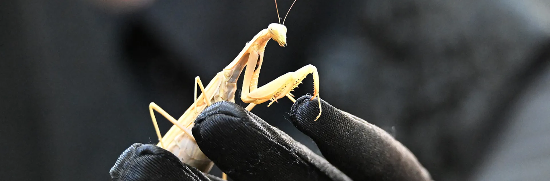 As for Betty White, the praying mantis, she declined to leave the gloved hands of Kerri Schillinger.