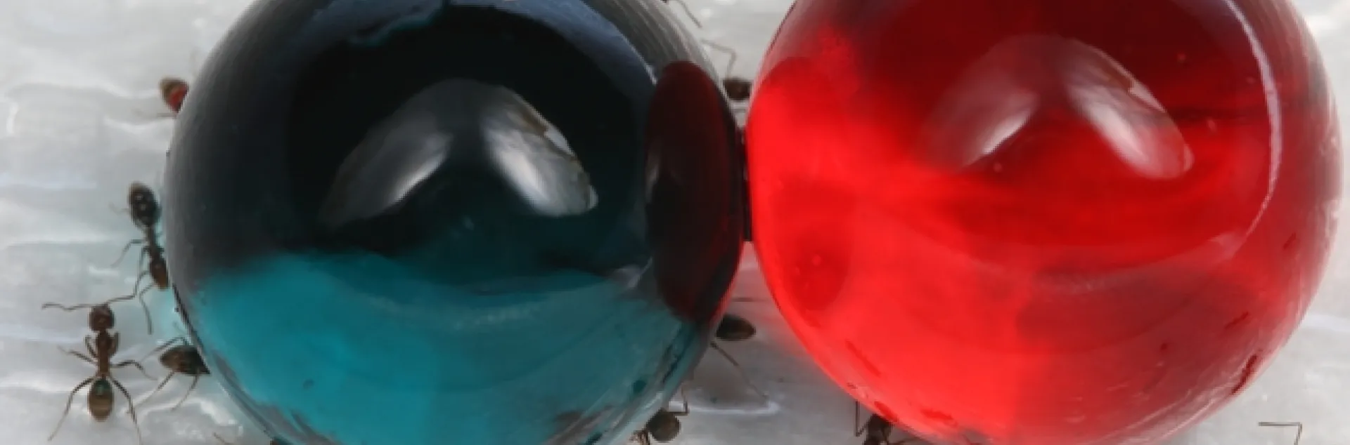 Baiting with sugar-based liquid baits has been shown to be an effective control method for Argentine ants but requires bait stations to store and dispense the bait. Bait stations can be expensive and labor-intensive to maintain. To overcome these challenges, a group of researchers at UC Riverside—Drs. Jia-Wei Tay, Mark Hoddle, Ashok Mulchandani, and Dong-Hwan Choe—developed a natural hydrogel matrix to deliver liquid ant baits (Figure 1). The use of hydrogels may allow practitioners to apply liquid bait directly to the surface of the ground where ants forage without the need for a bait station.