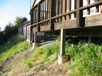 The deck above illustrates another problem — the growth of vegetation under the deck that can be a fire hazard.
